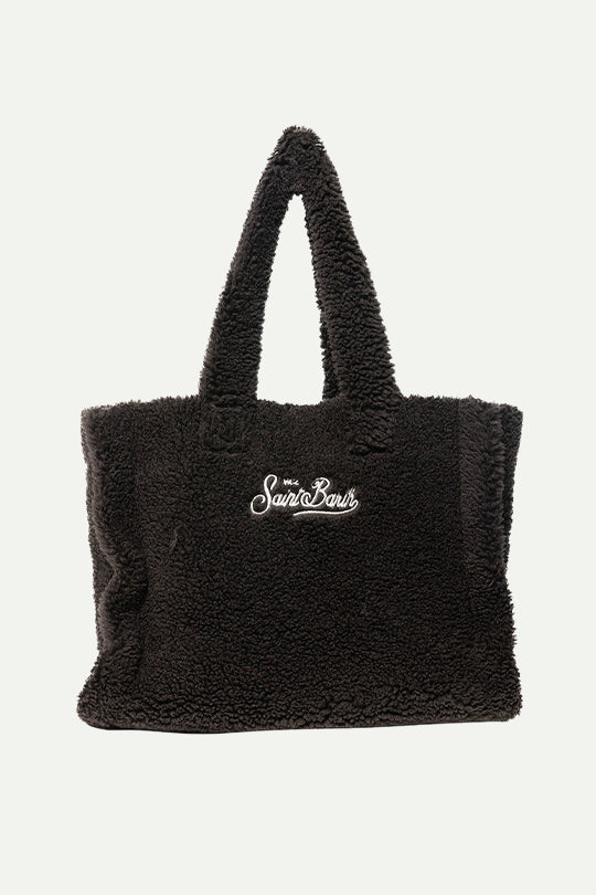 תיק טדי רך ונעים בעיצוב חורפי עם רקמת Saint Barth לבנה מלפנים.