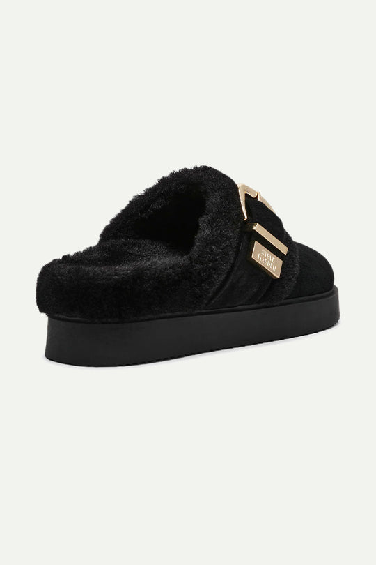 עשויות סוויד שחור רך עם אבזם זהב גדול שמוסיף טאץ’ יוקרתי.