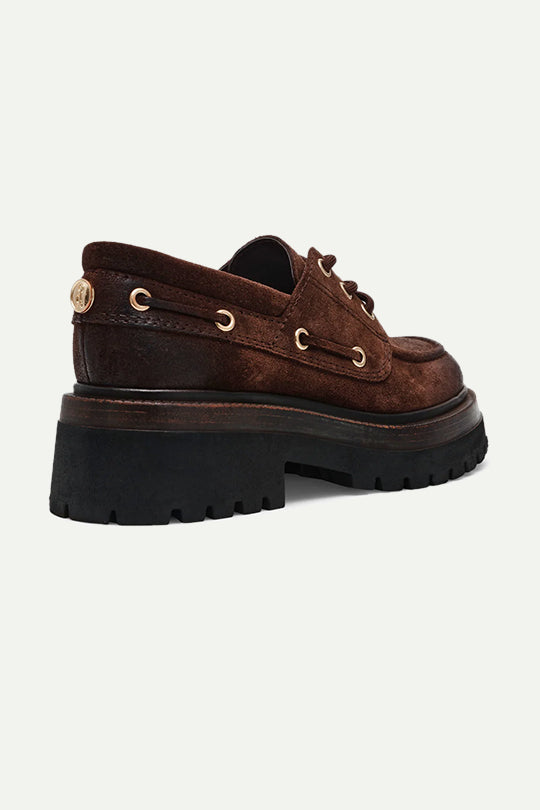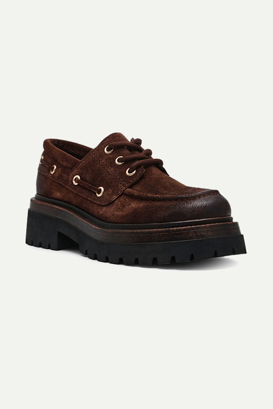 עשויות סוויד רך בגוון חום עשיר עם חורי מתכת ושרוכים עבים.