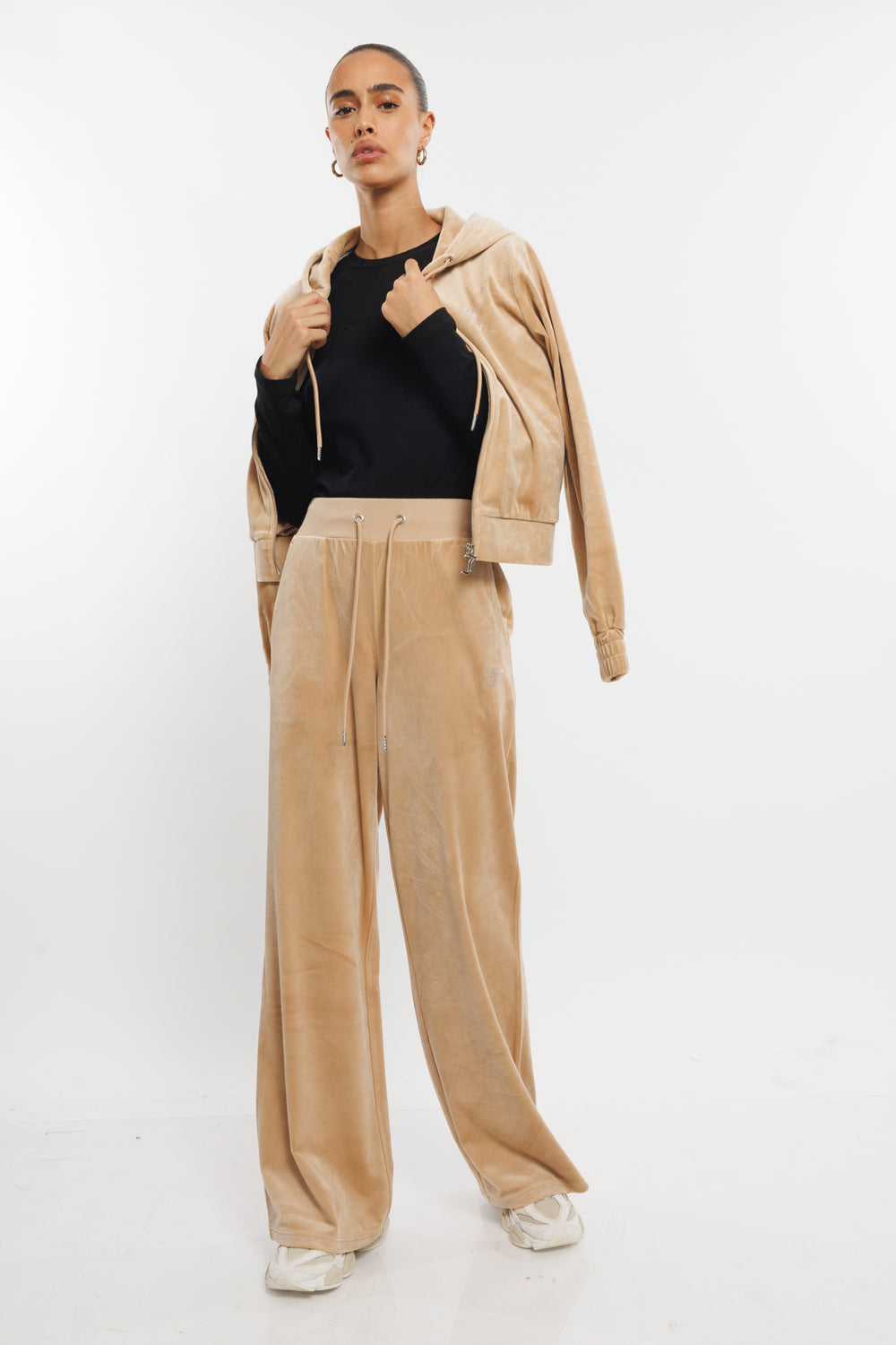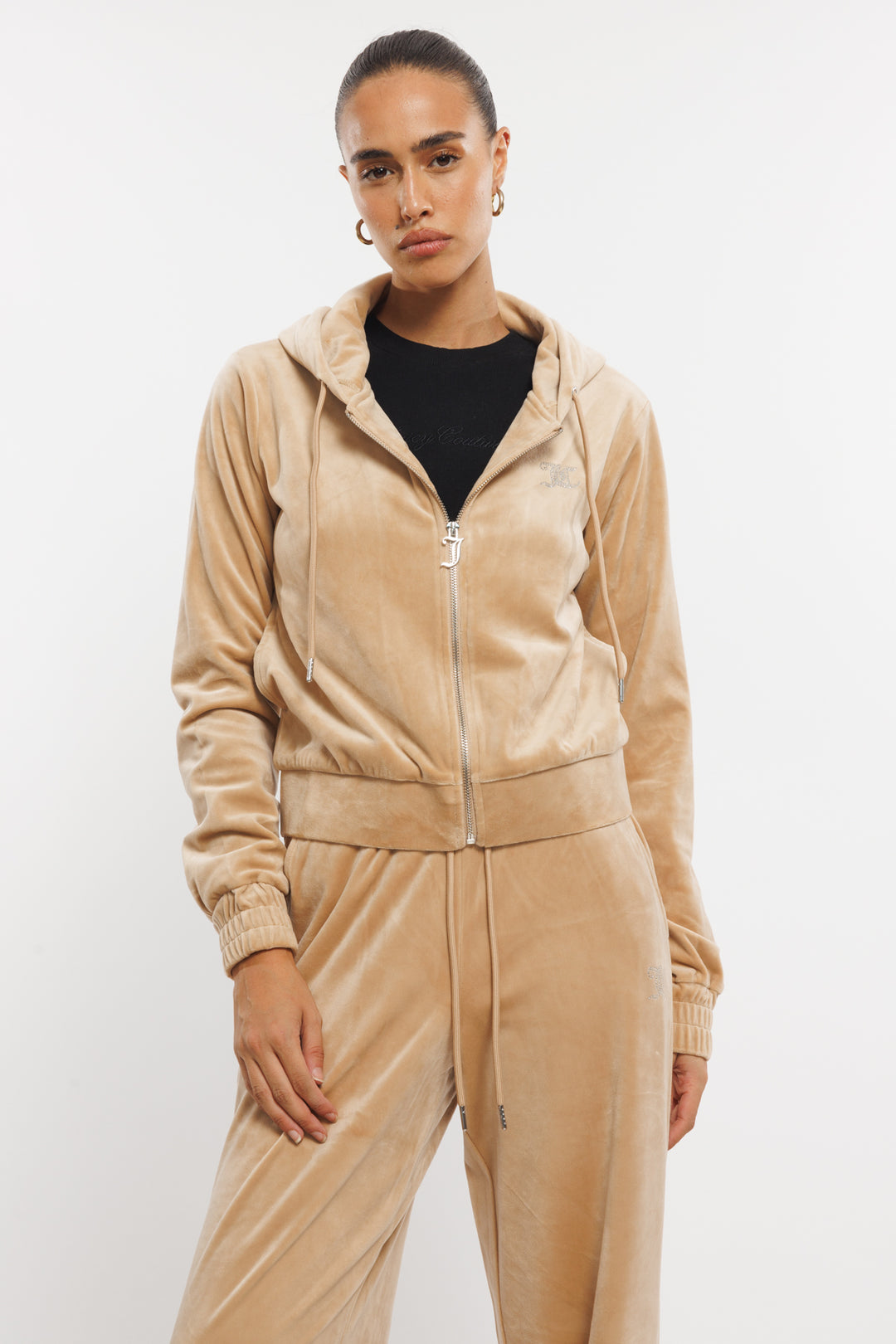 קפוצ'ון קטיפה עם רוכסן W Zipped Hooded בצבע בז'