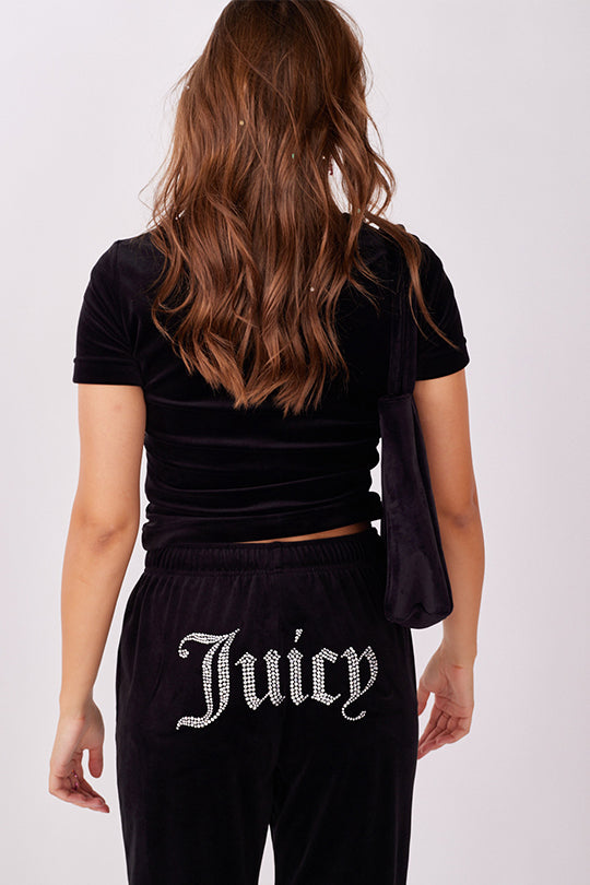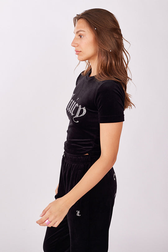 טי שירט קטיפה קצרה Diamonds בצבע שחור