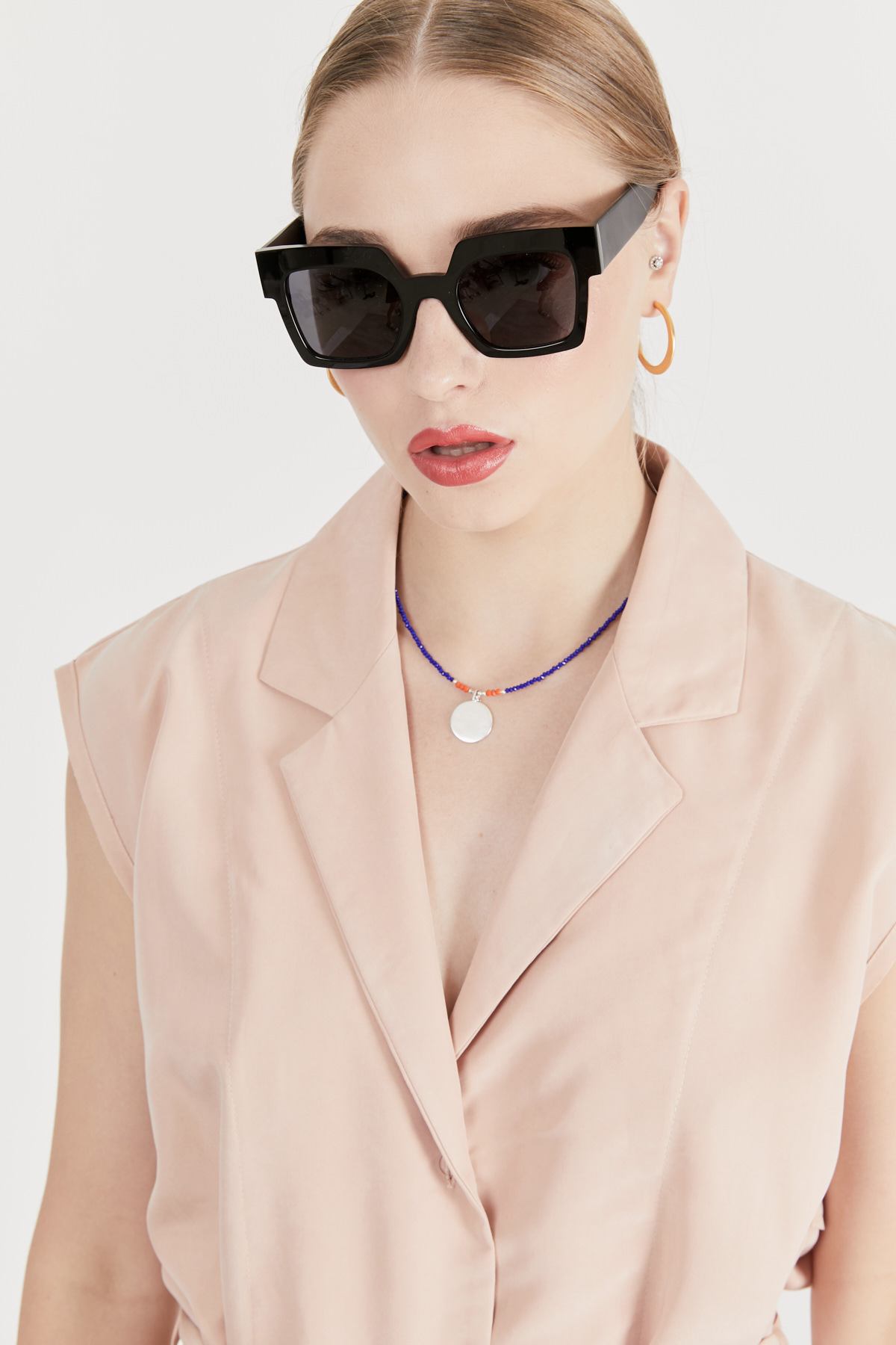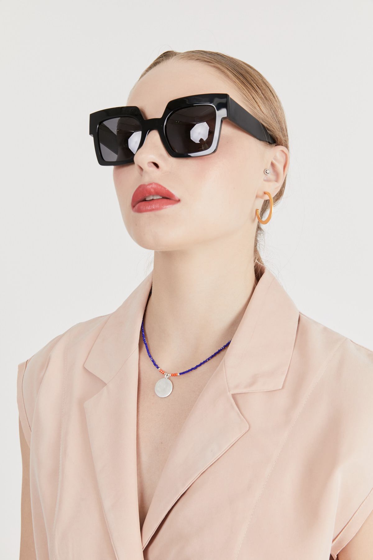 משקפי שמש מרובעות עם אצטט בגוון שחור ומוט עבה בגימור מט.