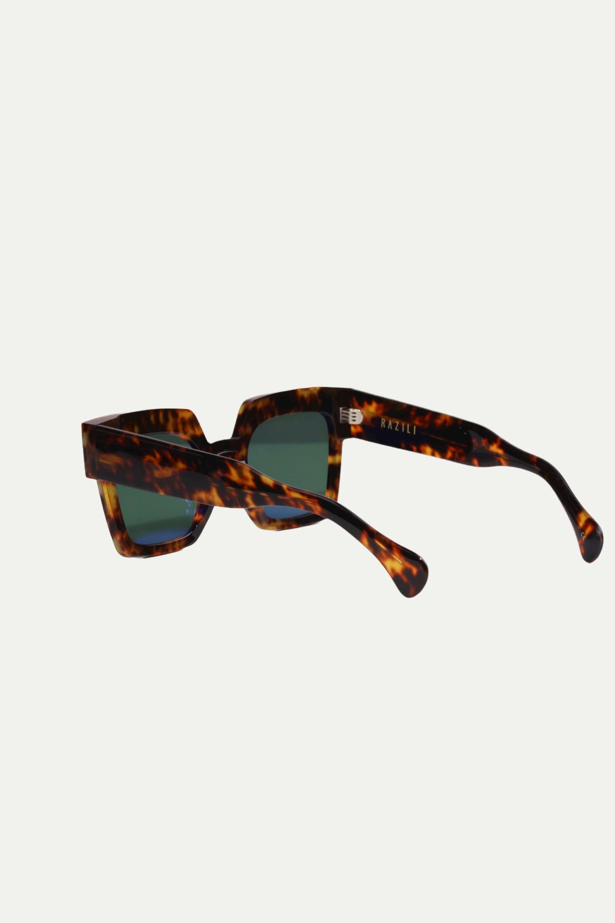 משקפי שמש בעיצוב רזילי סטודיו מותג הבית של רזילי הנותן מענה מגוון לאופנה הנכונה לאישה המשוחררת שיודעת להעריך פריטים ייחודים ואיכותיים. דגם זה מתאפיין במראה מרובע לסגנון שאוהב עיצוב ולא מפחד להביא סטייטמנט. זהו דגם עם מסגרת רחבה בצבע מנומר לצד עדשות בגוון ירוק הכוללות הגנת UVA/UVB.