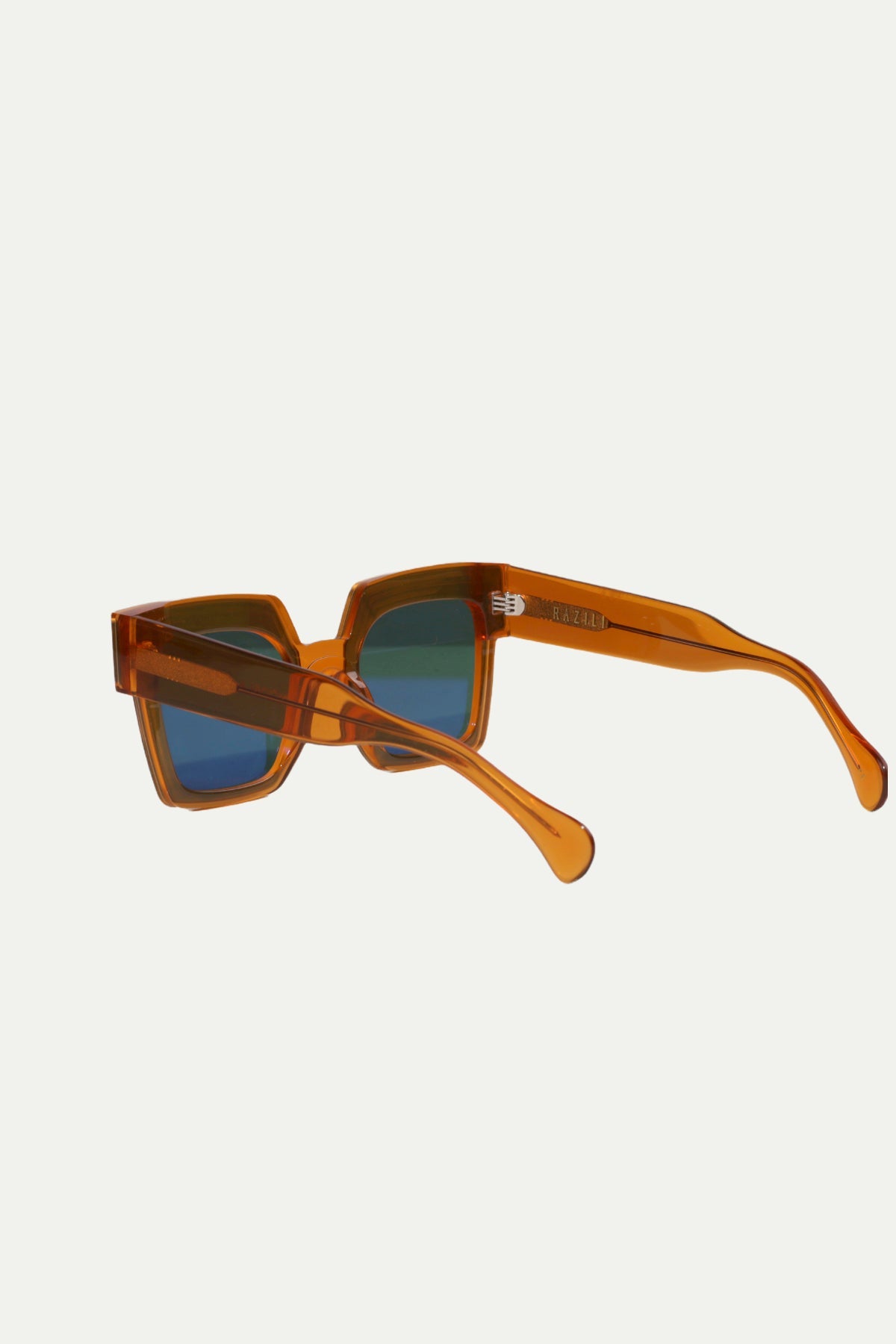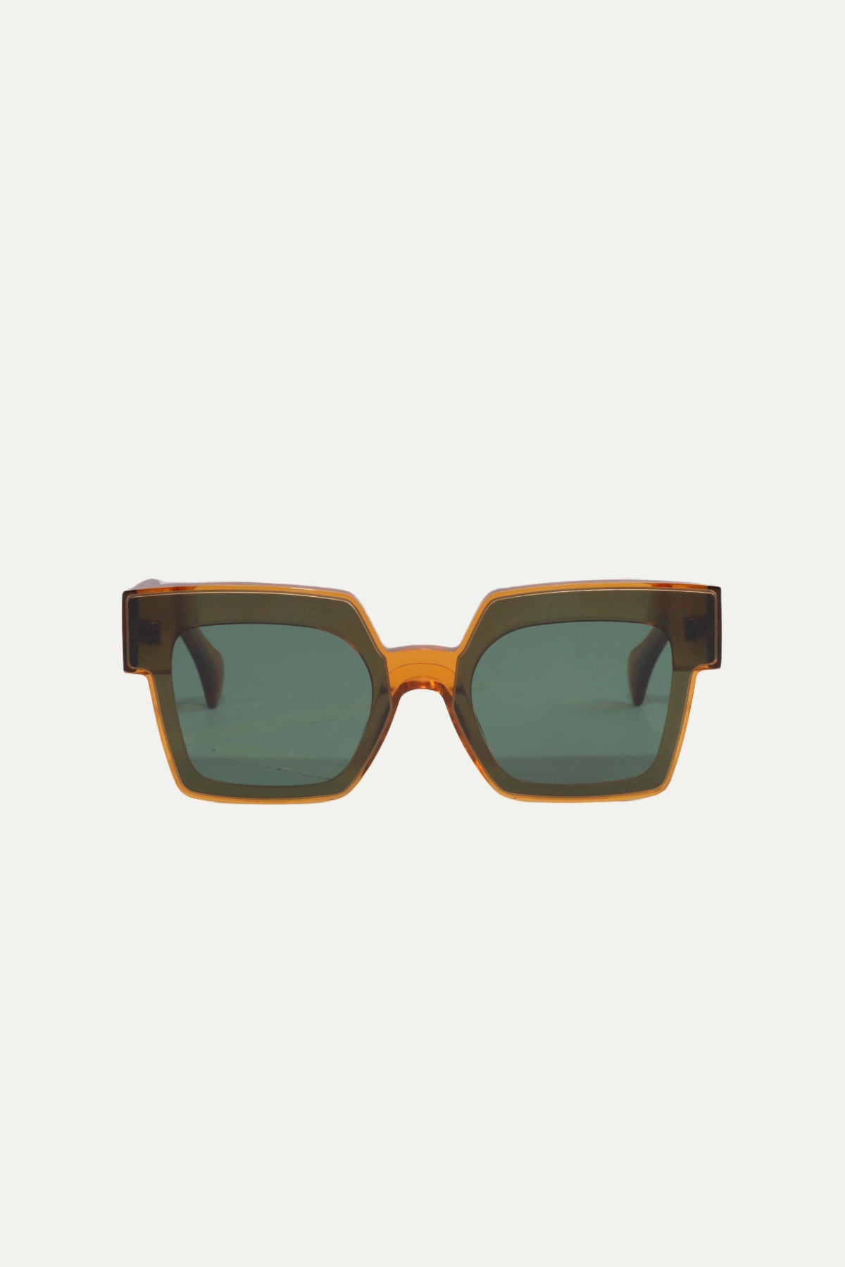 משקפי שמש בעיצוב רזילי סטודיו מותג הבית של רזילי הנותן מענה מגוון לאופנה הנכונה לאישה המשוחררת שיודעת להעריך פריטים ייחודים ואיכותיים. דגם זה מתאפיין במראה מרובע לסגנון שאוהב עיצוב ולא מפחד להביא סטייטמנט. זהו דגם עם מסגרת רחבה בצבע צהוב לצד עדשות בגוון ירוק הכוללות הגנת UVA/UVB.