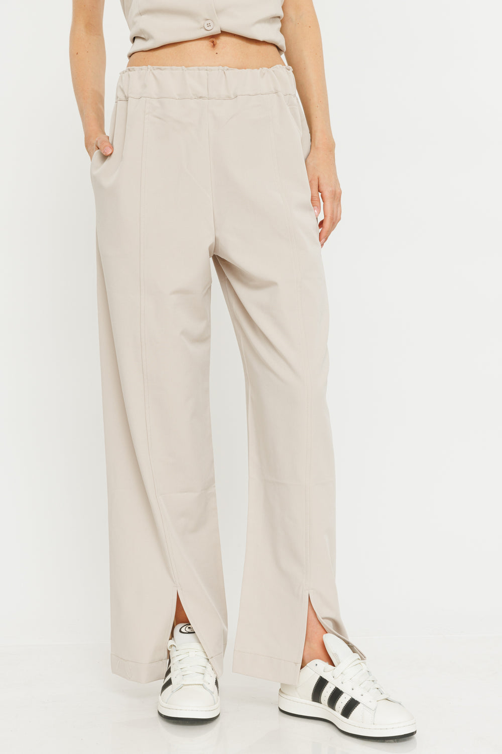 הכירי את מכנסי בלה המושלמים, המגיעים בגזרה רחבה עם שסעים מלפנים וגומי אלסטי במותן. שילוב של נוחות עם סטייל כמו שאנחנו אוהבות. דגם היסטרי לקיץ הקרוב שעשוי מבד קליל שלא יכביד עליך עם עומסי החום.