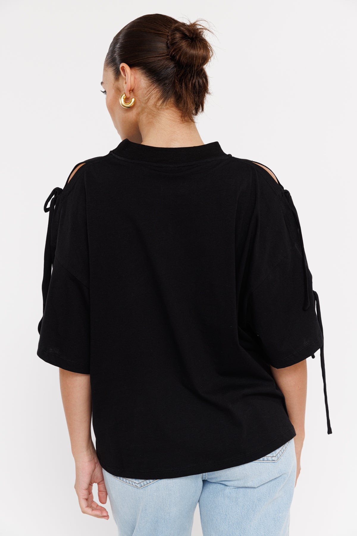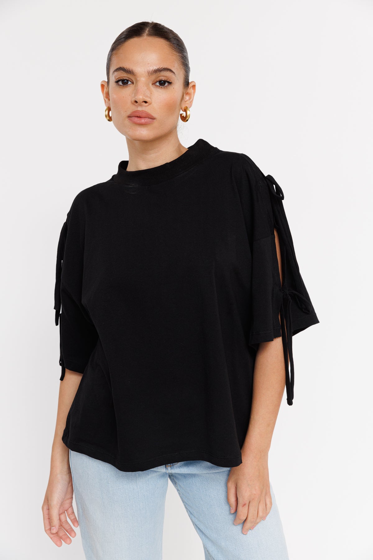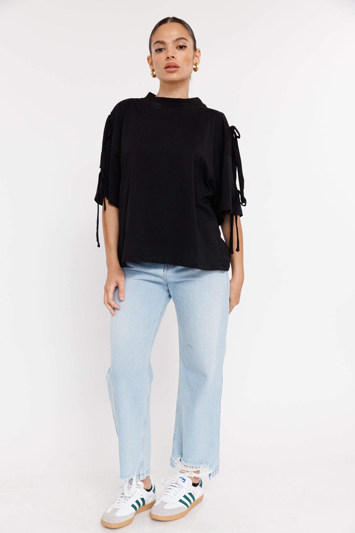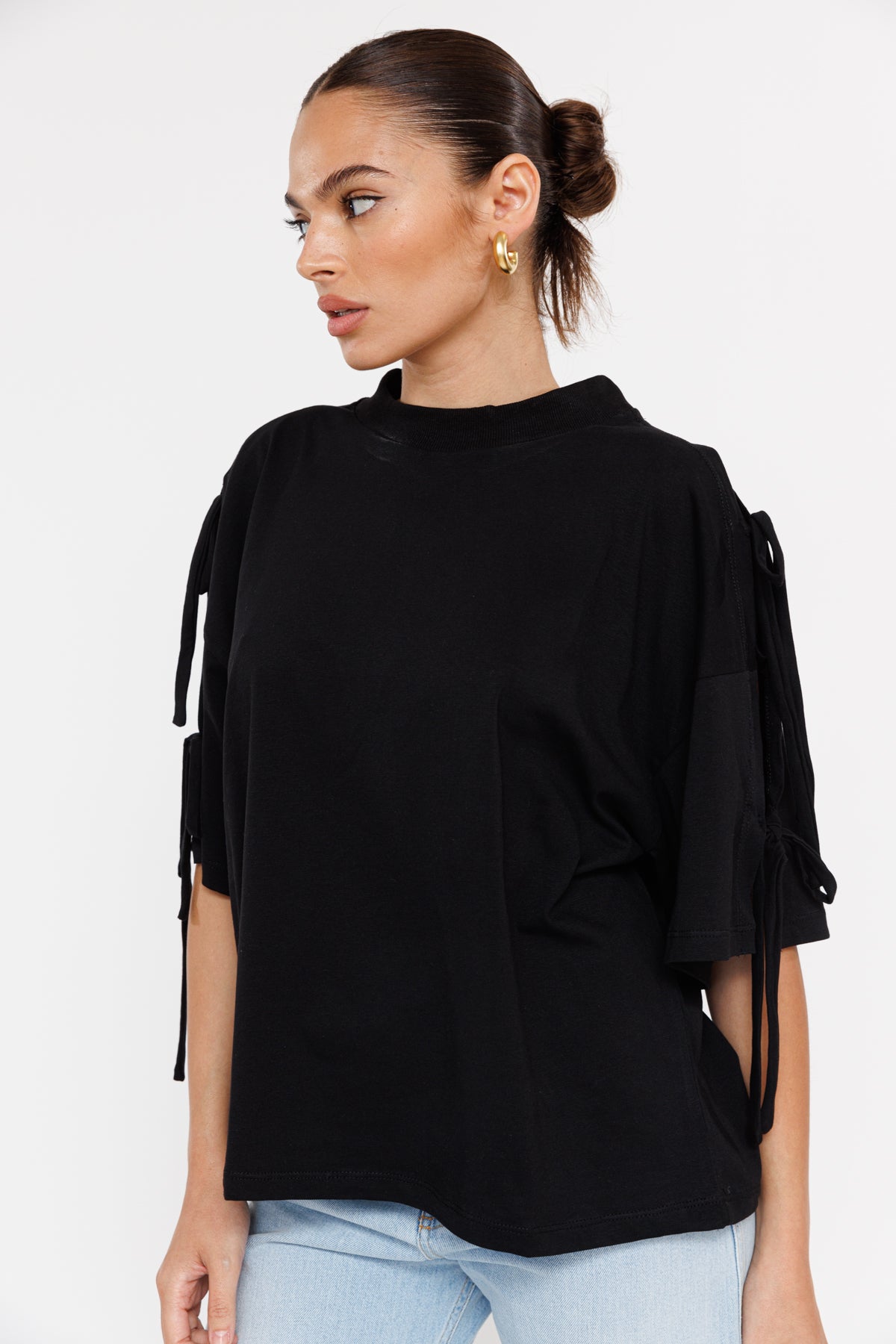 חולצה קצרה ומושלמת של מותג הבייסיק האהוב עלינו, רה. מדובר בהרבה יותר מטי שירט. לחולצה קשירות לאורך השרוול המוסיפות לה קוקטיות מושלמת של ילדה טובה. היא מתאימה עם הכל, מומלץ לקחת בכמה צבעים.