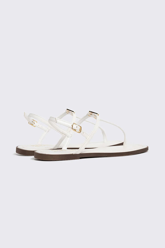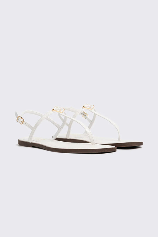 סנדלי אצבע אלגנטיים לנשים מדגם MAY THONG מבית Replay, בעיצוב מינימליסטי בגוון לבן נקי. כוללים רצועות דקות מעור סינתטי איכותי עם אבזם מוזהב לסגירה נוחה והתאמה מושלמת, ועיטור לוגו מוזהב בחלק הקדמי למראה יוקרתי ועדין. הסוליה שטוחה עם גוון חום כהה בחלקה התחתון, לנוחות לאורך כל היום ולמראה קיצי שיקי שמתאים לכל הופעה.