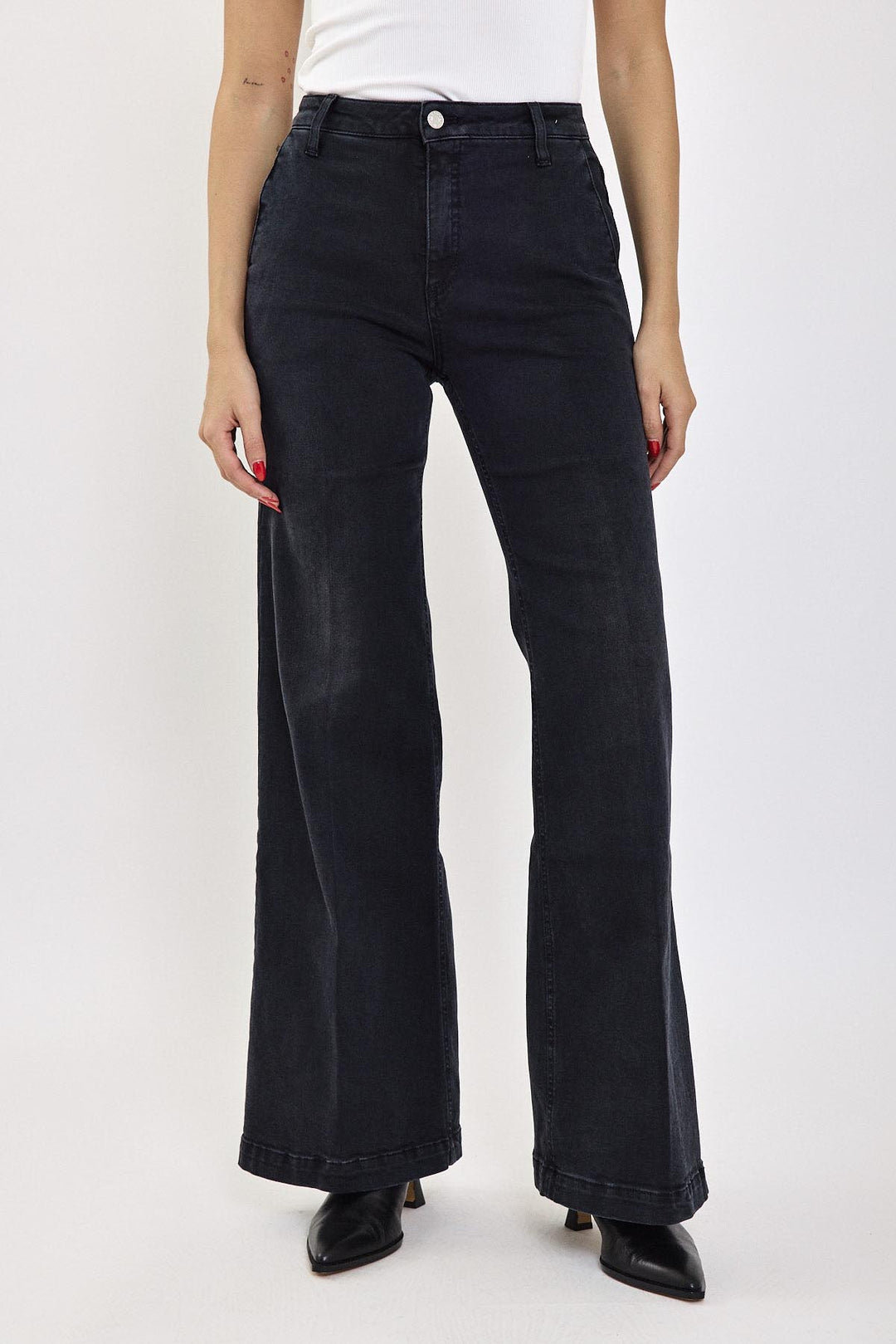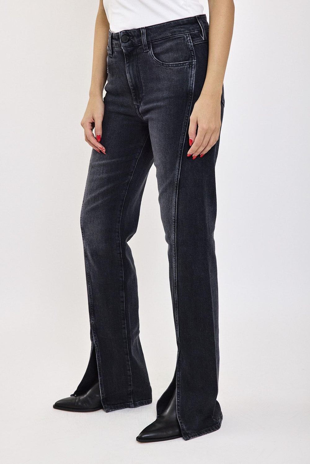 ג'ינס בגזרה ישרה עם שסע ייחודי בקדמת המכנסיים, בגוון שחור עמוק. עיצוב מרהיב הכולל תפר אמצעי שזורם לאורך הרגל ומסתיים בשסע טרנדי, המשווה למכנסיים מראה נועז ומתוחכם. הבד גמיש ונוח, מה שמאפשר תנועה חופשית ונוחות לאורך כל היום. מתאים לשילוב עם נעלי סניקרס או עקבים להשלמת הלוק.